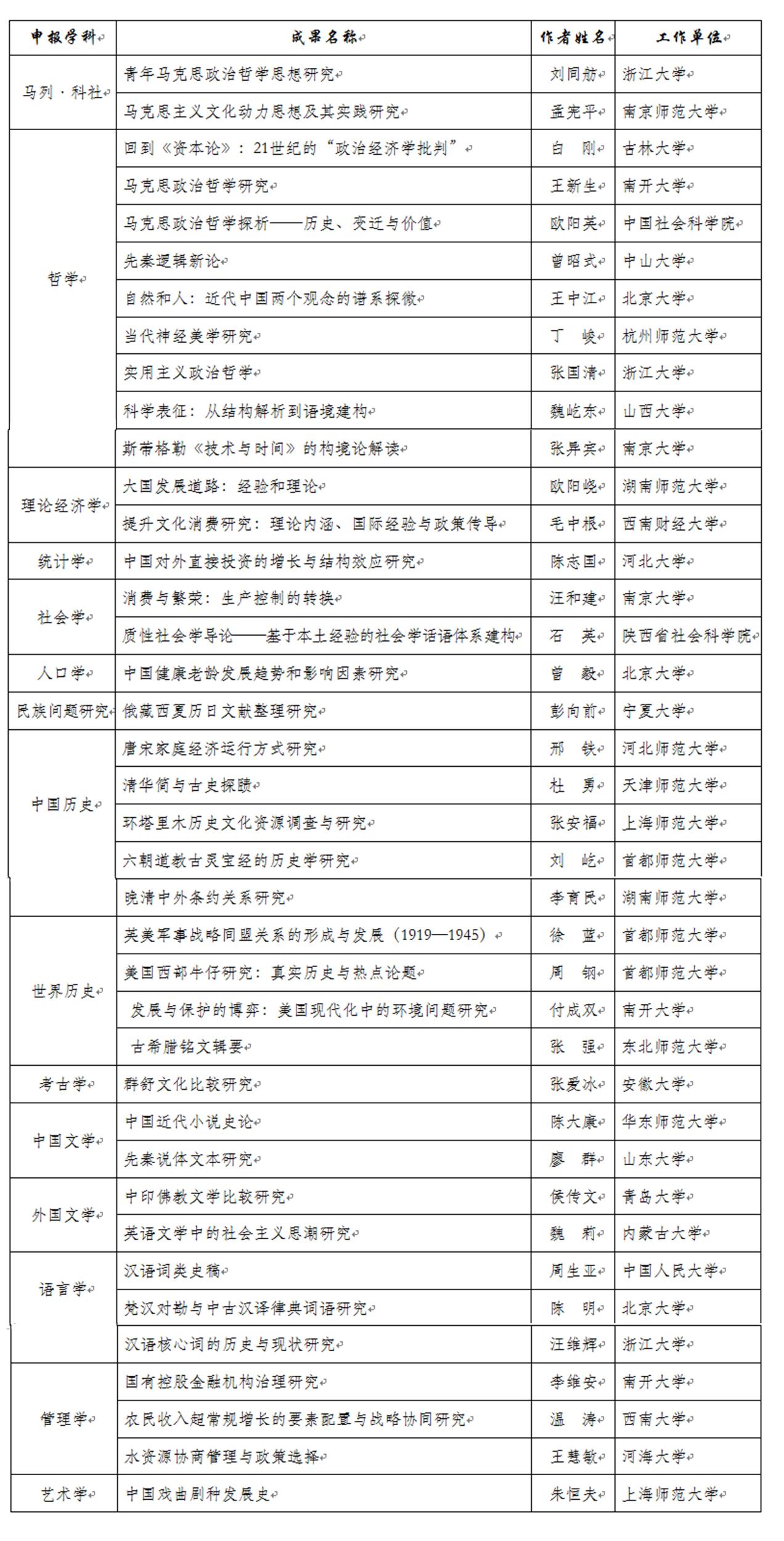 2017年度国家哲学社会科学成果文库公示名单(共39项)