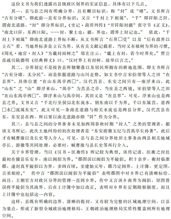 秦汉王朝统一后,处在历史的十字路口。若直接沿用西周春秋及其以前的体制模式,则殷鉴不远,难以维持王朝统一与稳定;若彻底否定历史,以军事武力打造一个统一帝国,同样会昙花一现,如西方古代史上一些庞大帝国。所幸的是,秦汉王朝构建起一套符合当时社会发展实际的大一统中央集权体制,并在这一格局下对历史时期形成的人文地理格局进行重构,形成了较为完备的县域人文地理构造,从而使秦汉王朝实现了与文明起源以来历史的有机衔接,使大一统格局有了坚实基础。此后两千多年间,尽管不同类型的政区不断调整,唯县长期稳定存在,在中国古代大一统文明体存续与发展中起到了重要基石作用。