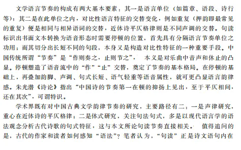 其一,句读作为划分语句停顿的手段,在塑造语言节奏的众多因素中居于基础地位。声调平仄、语词重复、轻重升降等手段,可以说都是在句读切分出的语言单位之上,进一步叠加、强化节奏感;句式长短、奇偶交错、语气缓急等更是直接以句读为依托。古典诗文的不同文体实现韵律节奏的方式各有侧重,而句读停顿则是一个跨文体的普遍标准。