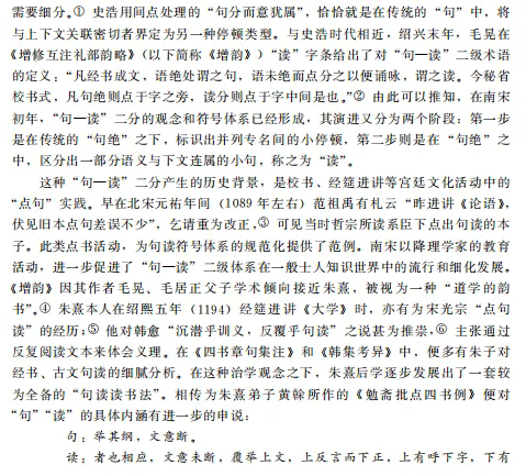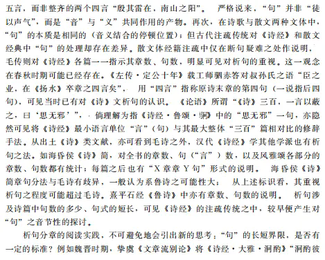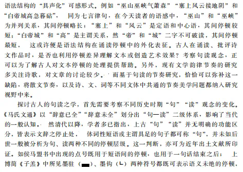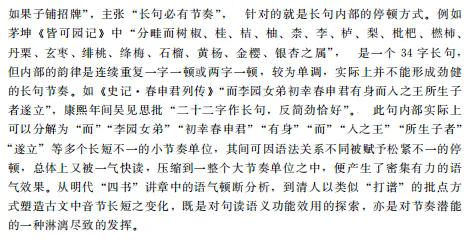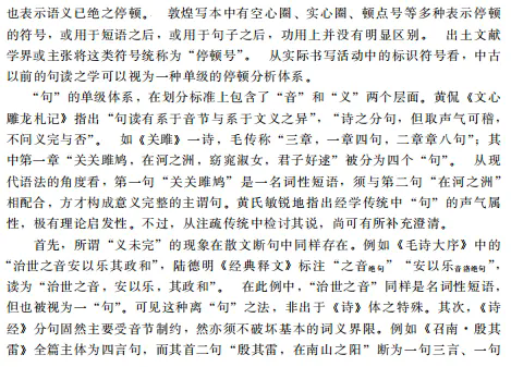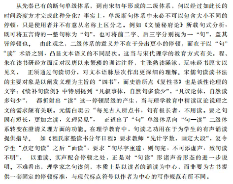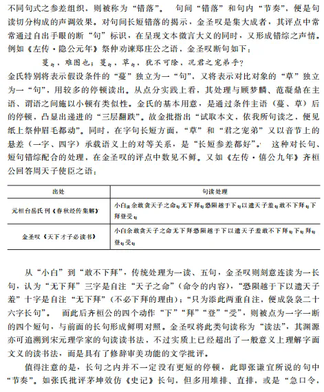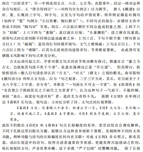 其四,句读在古代各种文体中普遍存在,而在不同文体中又有不同的焦点。除了诗/词/文、骈/散等大端区分,在古文内部,亦有议论文“读多句少”、叙事文“句多读少”等不同的表现。对句读的考察,应当成为古代文体学研究中的一个重要因素,对现当代的文体风格研究亦有参考价值。