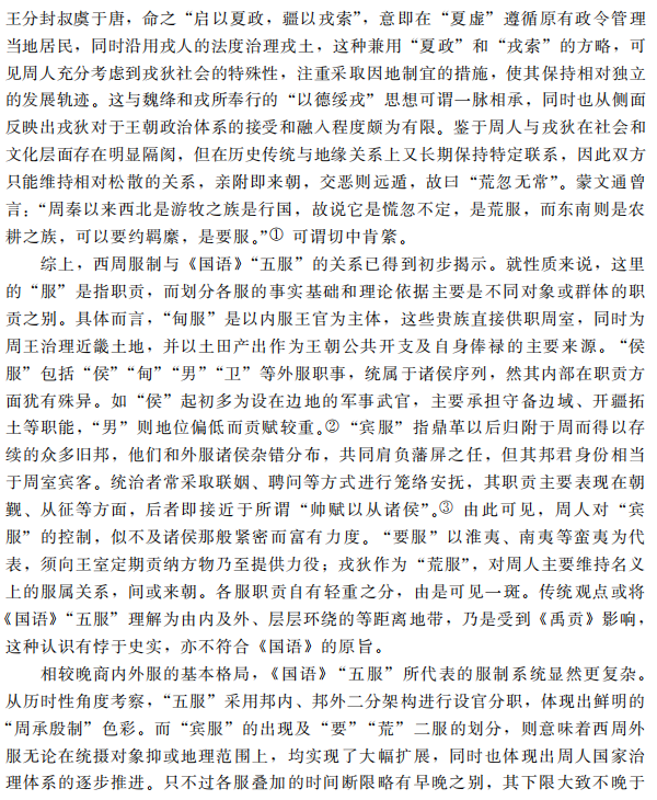 二、 《国语》“要服”“荒服”之分与西周服制的发展
