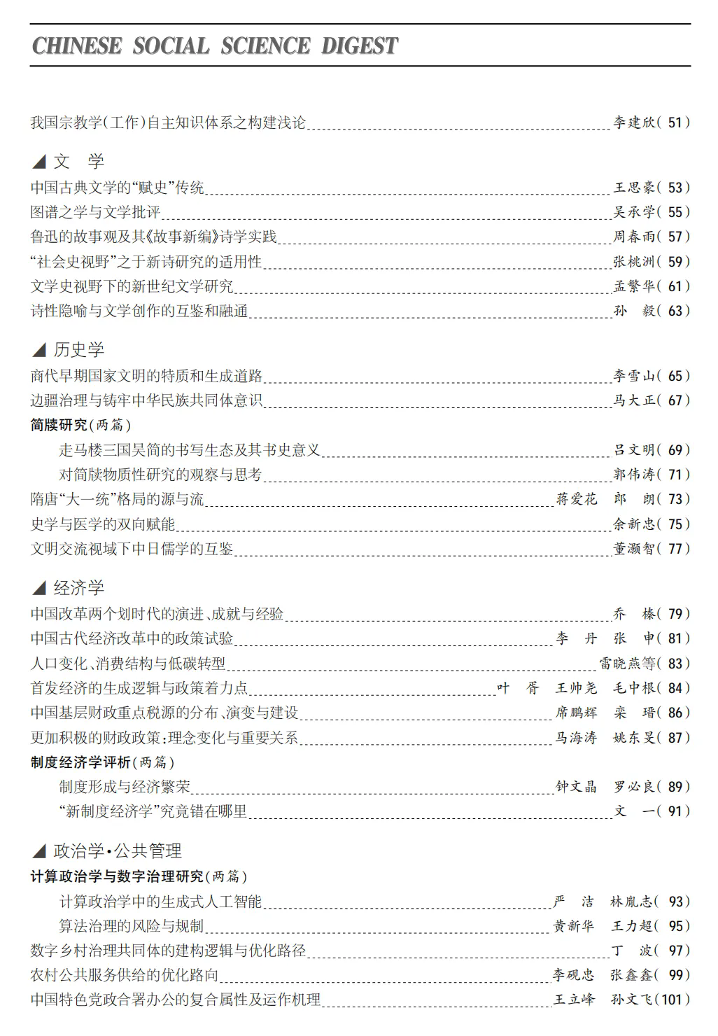 《中国社会科学文摘》2025年第4期封面及目录