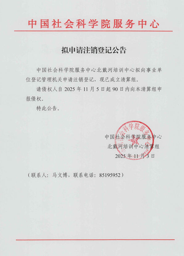 中国社会科学院服务中心关于北戴河培训中心《拟申请注销登记公告》