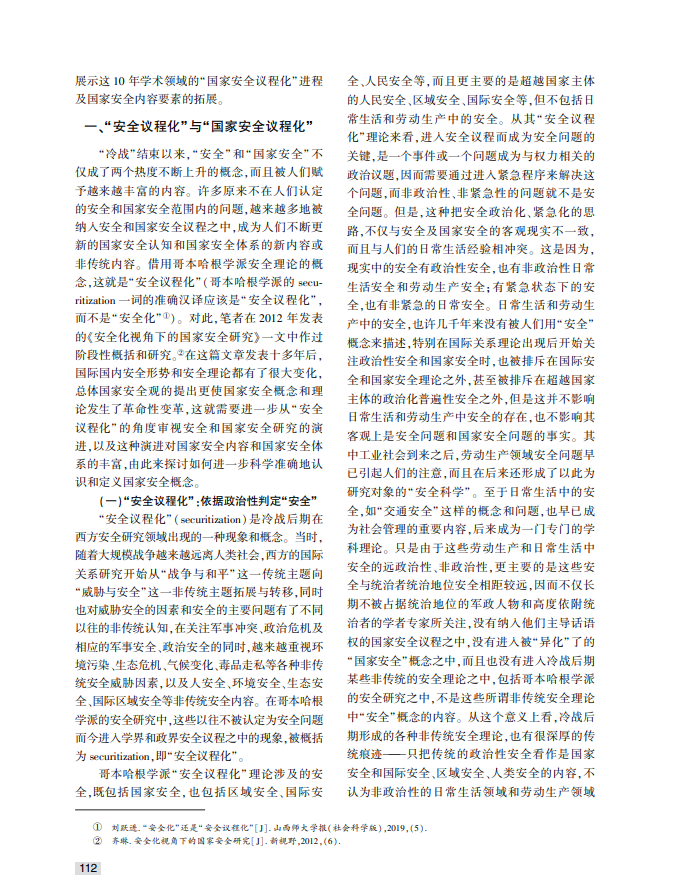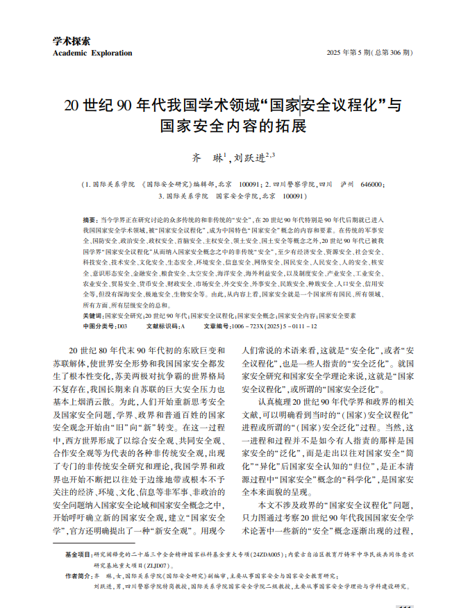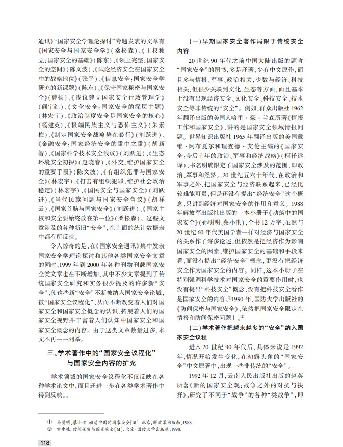 20世纪90年代我国学术领域“国家安全议程化”与国家安全内容的拓展