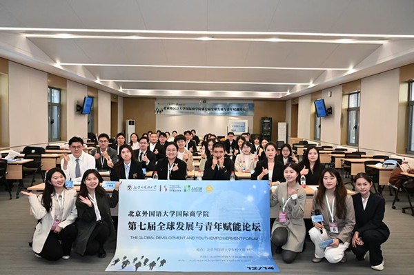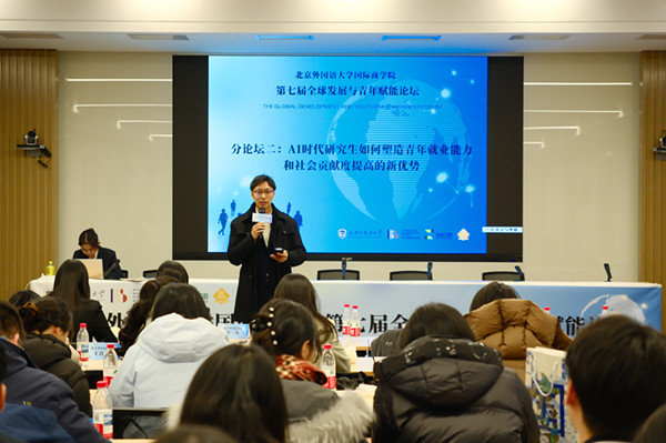 中国社会科学网讯 (记者 李想)12月14日,第七届全球发展与青年赋能论坛在北京举行。此次会议由北京外国语大学国际商学院主办,北京外国语大学国际商学院研究生团总支承办。会议的主题是:智周万物,商赢未来—AI时代青年全球胜任力培养与高校学生组织价值共创论坛。此次论坛聚焦人工智能浪潮下青年能力跃迁与学生组织协同发展的前沿议题,旨在引导青年学子厚植家国情怀、开拓全球视野、锤炼专业本领,推动高校研究生骨干在思想碰撞中共谋发展、于价值共创中携手前行。