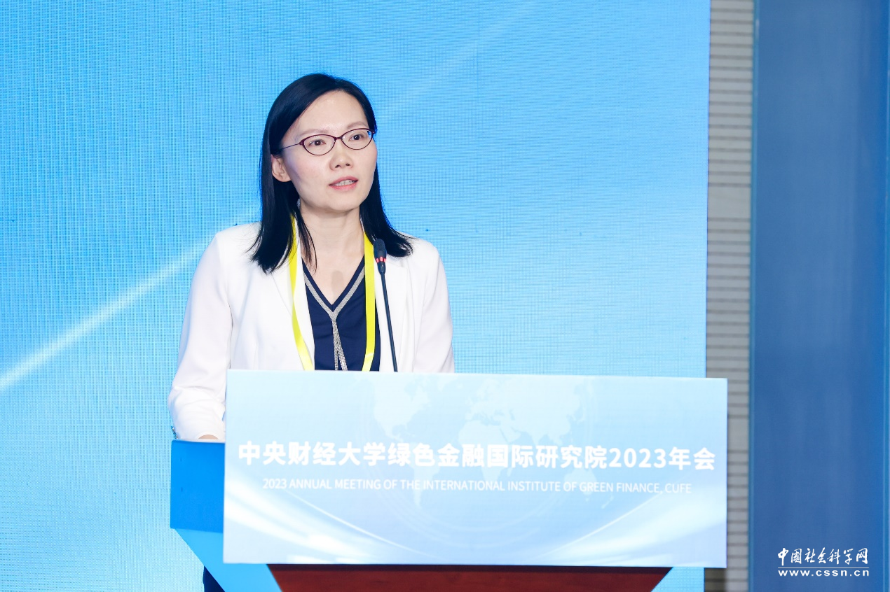 会上的成果发布环节,中央财经大学绿色金融国际研究院副院长、绿色贸易融资实验室负责人孙瑾发布《绿色贸易融资发展和实践》;该院高级学术顾问施懿宸发布《基于披露视角的央企高质量履行社会责任相关研究》、与水滴公司合作的《中概股ESG白皮书》、与华润江中合作的《中医药行业ESG标准》;该院助理院长、成果转化中心主任,中央财经大学—北京银行双碳与金融研究中心执行主任严展发布“ESG数据应用创新平台”、“基于区块链的一站式绿色金融开放平台”;该院ESG中心联合主任杨晨辉发布“公募基金可持续影响力投资分析器”、“ESG数据库3.0”;该院绿色金融研究中心主任任玉洁发布《中国绿色金融研究报告》、《中国地方绿色金融发展报告》、《绿色金融科技创新》;该院国际合作部主任毛倩发布《全球绿色金融发展报告2022》、《深化中非可再生能源合作-津巴布韦与埃及案例研究》;该院气候金融研究中心执行主任、碳金融实验室联合主任刘慧心发布与UNDP合作的《中国绿色预算发展前景研究》;该院能源金融研究中心副主任金子曦发布与气候债券倡议组织(CBI)合作的《支持钢铁行业转型的金融研究》;该院艺术品金融与慈善财经研究中心主任田婧发布《共同富裕背景下的中国慈善金融发展前景研究(摘要)》;该院健康金融实验室(数据库)主任、课题组组长任国征发布《2023健康金融报告(中医中药专题)》、《2023养老金融报告(社会保障专题)》;该院教育中心主任韩佳宁发布“国际ESG证书—可持续与负责任投资专业评估项目”。该院副理事长鲁冀主持该环节。