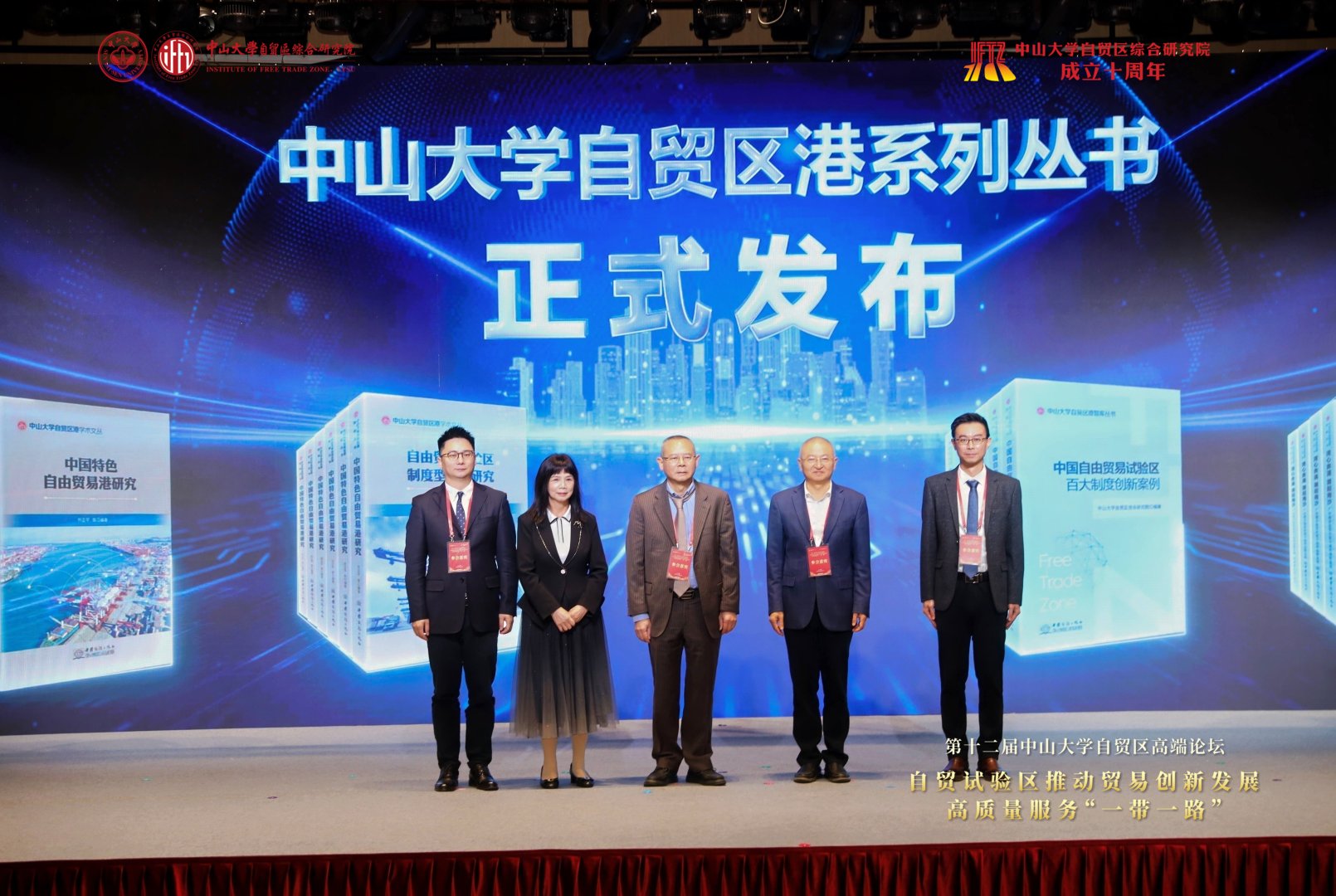 会上举办了中山大学自贸区港系列丛书发布仪式。中山大学自贸区综合研究院副院长、中国自贸区港研究智库联盟秘书长史欣向介绍,该系列丛书由中山大学自贸区综合研究院与中国商务出版社联合出版,共有两个系列,一是中山大学自贸区港智库丛书,二是中山大学自贸区港学术文丛。其中代表作有《中国自由贸易试验区百大制度创新案例》,揭晓中国自由贸易试验区发展建设过程中涌现出的具有代表性的百大制度创新案例,系统呈现我国自由贸易试验区建设进程中涌现的标杆性制度创新成果;《中国特色自由贸易港研究》为承担国家社会科学基金重大专项“中国特色自由贸易港‘1+N’模式的制度创新及实现路径”的研究成果,系统覆盖中国特色自由贸易港建设的核心命题与关键领域;《改革破题 创新引路——前海制度创新研究》聚焦前海在现代服务业、法治建设、区域治理以及推动香港融入国家发展大局等多方面的制度创新,深入剖析现状、总结经验,并提出极具前瞻性的展望和建议,对理解和推动前海发展乃至粤港澳大湾区建设意义非凡。