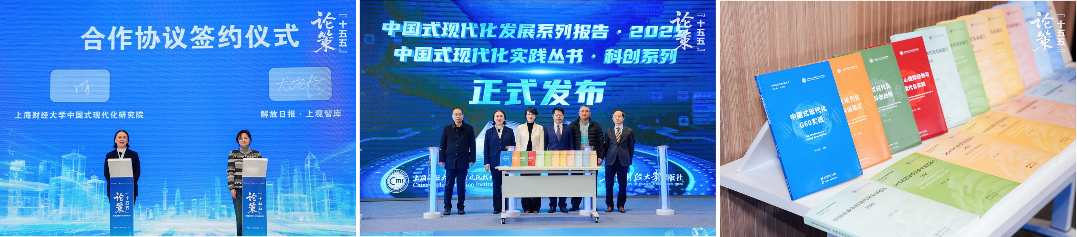 开幕式上,上海财经大学中国式现代化研究院与解放日报·上观智库签署合作协议,双方将在城市发展、金融建设、政策研究等领域展开深度合作,通过将上观智库的传播力、链接力与中国式现代化研究院的学术力、国际影响力进行有机融合,为“十五五”时期的创新思想生产、公共政策支撑和舆论引导注入双重动能。