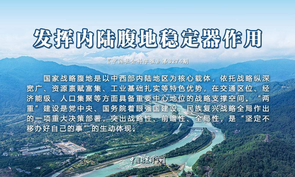 党的二十届四中全会通过的《中共中央关于制定国民经济和社会发展第十五个五年规划的建议》将“推进国家战略腹地建设和关键产业备份”作为加强重点领域国家安全能力建设的重要内容之一,为国家战略腹地建设提供了指引和遵循。通过加强国家战略腹地建设,构建优势互补、高质量发展的区域经济布局和国土空间体系,能够增强国内大循环内生动力和可靠性,统筹实现高质量发展和高水平安全的动态平衡。面向“十五五”,加强国家战略腹地建设,就是要发挥内陆腹地稳定器作用,确保现代化事业不会错失机遇、不会被打断进程。