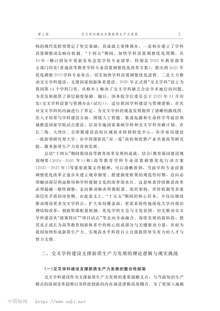 交叉学科建设支撑新质生产力发展