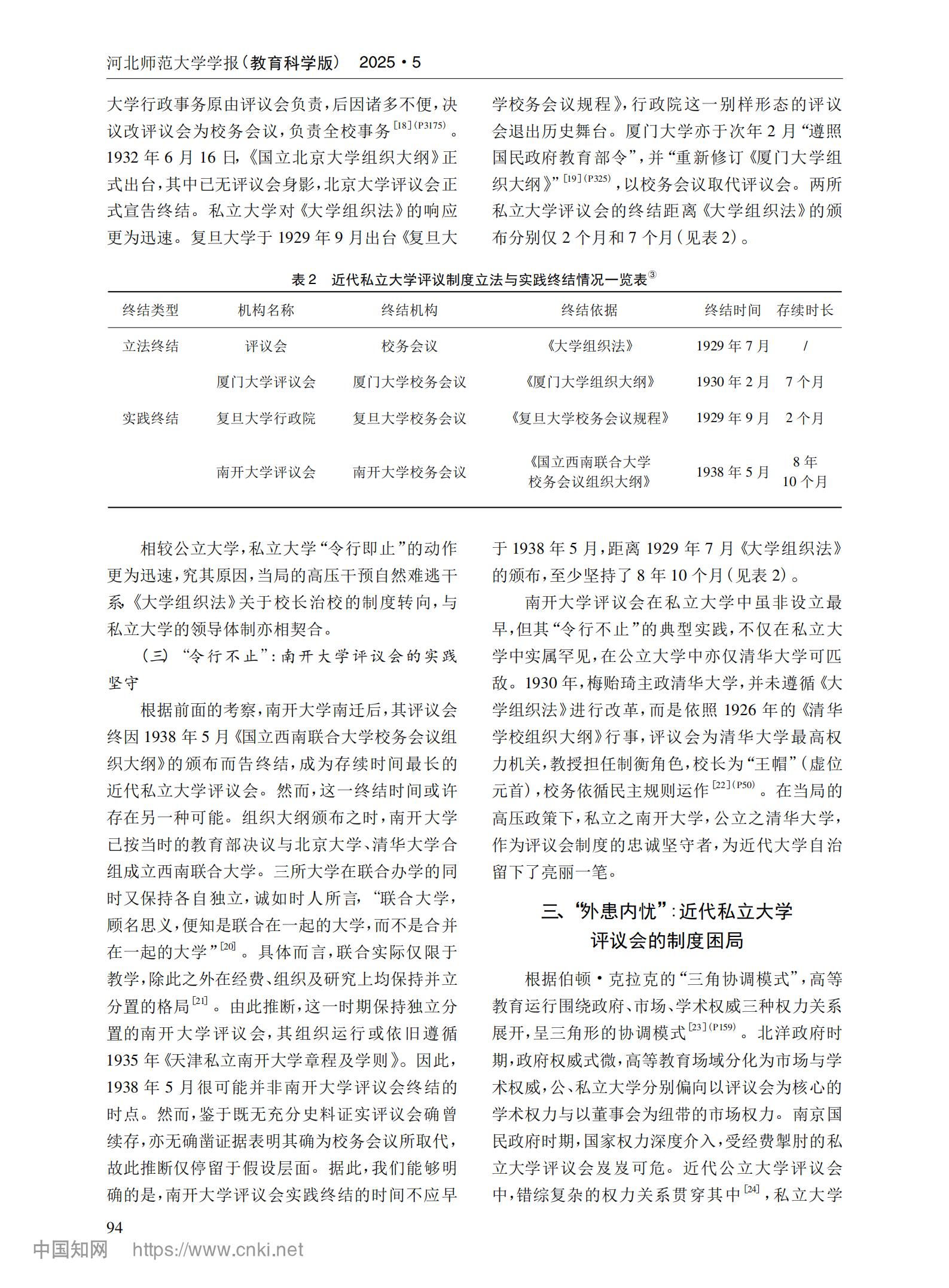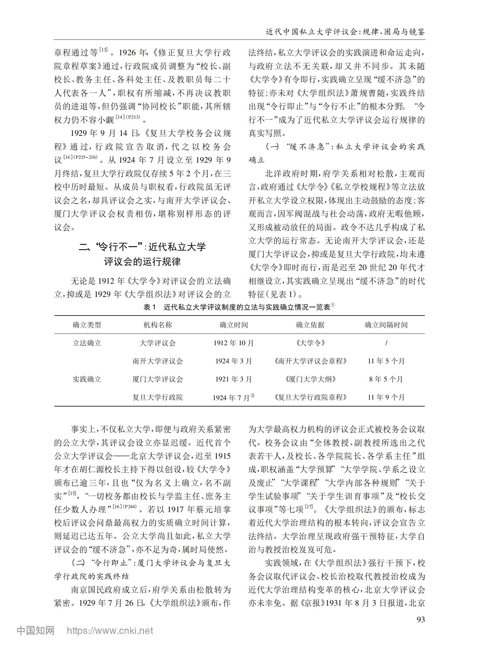 近代中国私立大学评议会: 规律、困局与镜鉴