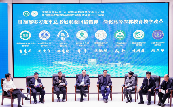 圆桌论坛上,南京农业大学副校长王源超、华中农业大学副校长青平、北京农学院副校长武艳等7所高等农林高校领导围绕“贯彻落实习近平总书记重要回信精神,深化教育教学改革”展开深入研讨,交流各校在新农科建设、AI赋能、产教融合等方面的实践与探索。
