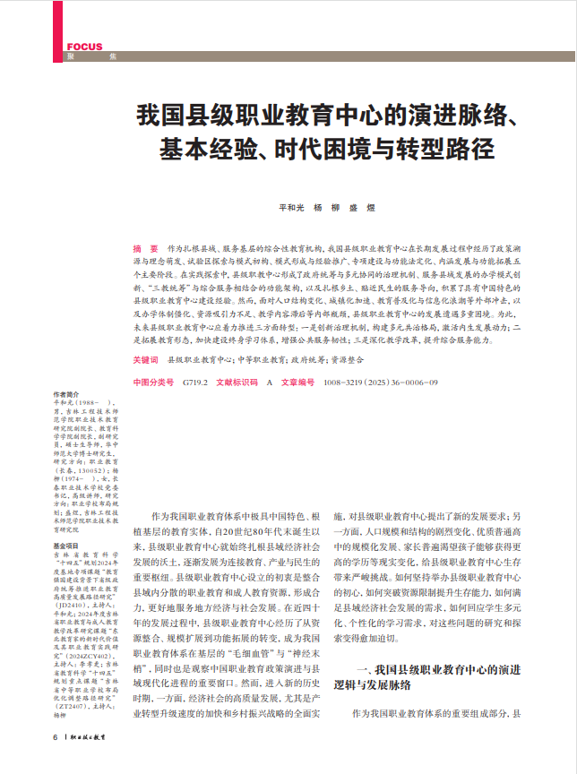 我国县级职业教育中心的演进脉络、基本经验、时代困境与转型路径