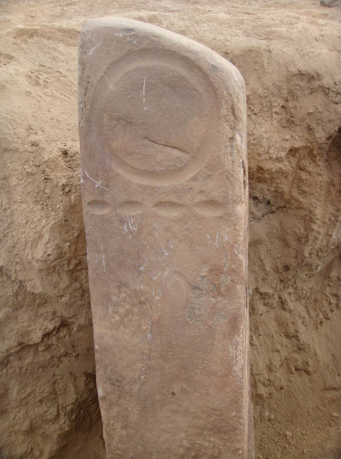 古墓葬墓道中出土刻有马图案的鹿石