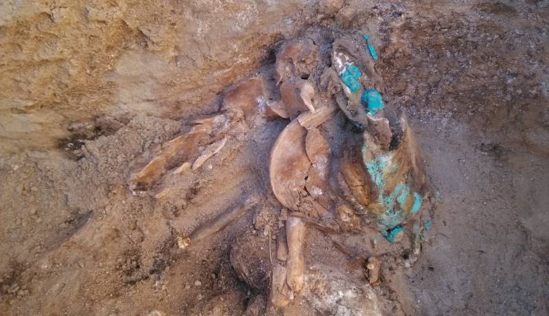 M13的发掘让波澜不惊的风季发掘有了让人喜悦的气氛,那依然是一座被盗扰的墓葬,即便如此,也留下较多的信息,比如一块大石板下面佩戴完整笼头的马首,相对完整的墓室,盗墓者直奔墓室,取走了他们最看重的金器,遗留下了看不上的铜器、陶器、骨器。M13随葬了七匹马,这种情形也很少见。