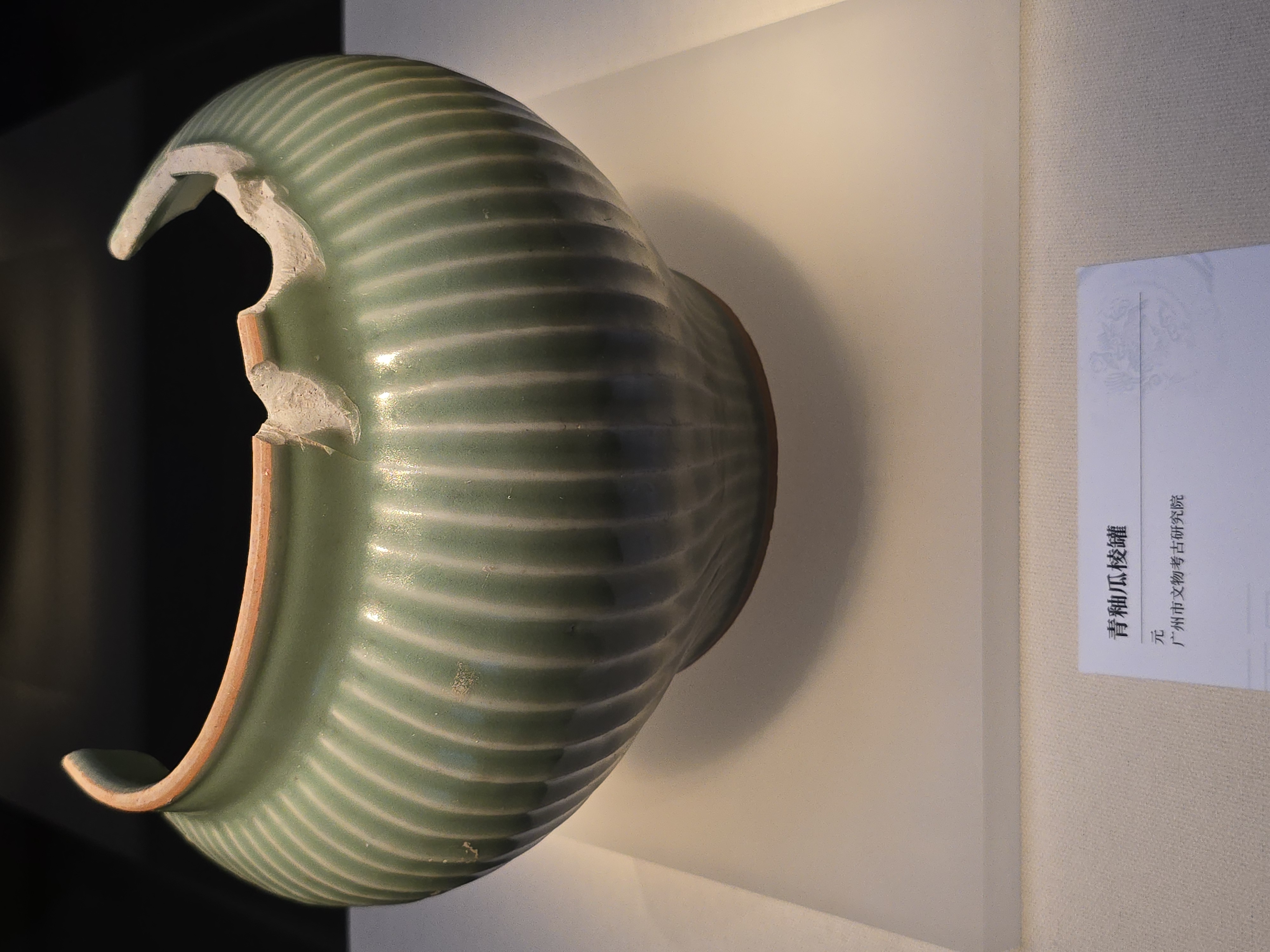 展览共展出展品216件/套,通过展示惠州白马窑及广东其他地区仿龙泉青瓷的物质遗存,梳理明代广东仿龙泉青瓷的生产(窑址)、流布(遗址/沉船)、港口/城市之间的关系,再现广东陶瓷海外贸易与技术交融的历史场景。展览以全球化视野构建完整叙事链条,精心设计了“白马青瓷”“又见龙泉”“浙源粤流”“翠色千帆”四个部分,清晰呈现从浙江龙泉窑的技术源头,到广东窑业的吸收创新,再到以广州为枢纽销往世界的贸易历程。