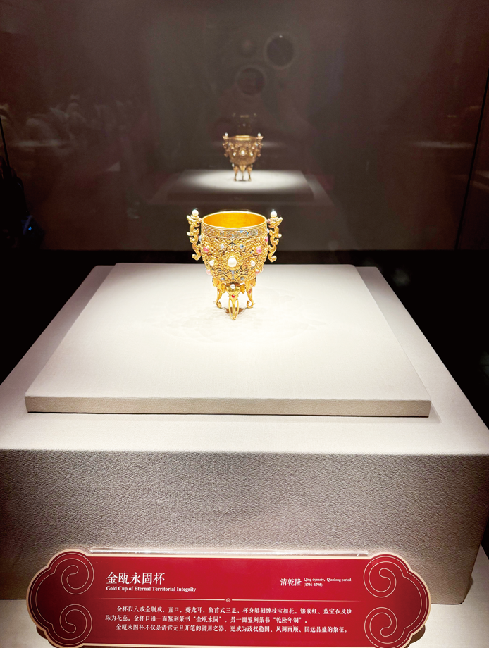 ■“百年守护——从紫禁城到故宫博物院”展览展出的金瓯永固杯。 中国社会科学报记者 班晓悦/摄