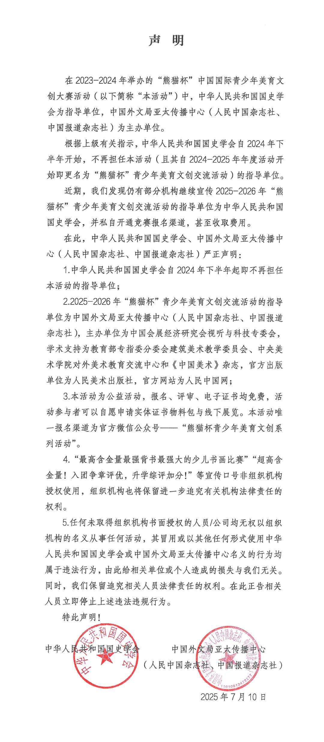 关于“熊猫杯”青少年美育文创交流活动的声明