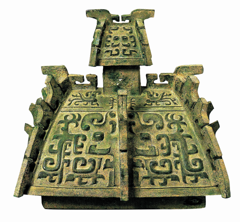 鲁方彝盖高29厘米,口横31.5厘米,口纵16厘米,重8.5千克。状似庑殿形屋顶,下有子口,盖钮亦同,脊上均有扉棱。四坡均饰鸟纹和倒置的外卷角兽面纹,纹饰粗犷,无地纹。从鲁方彝盖的兽面纹来看,结构较为松散,已经完全失去了兽面纹鼎盛时代的那种象征,应该是兽面纹流行的尾声了。