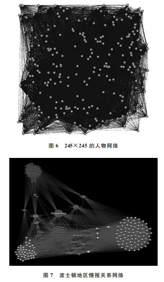 根据所谓中介中心度的算法,可以计算出谁是网络中最具居间作用的人。这是因为该指标表示一个网络中经过该点的最短路径的数量,它关注的是某点“介于”其他两者之间、筛获两点间资讯的“能力”,因而构成了两个群组之间的重要桥梁而显得身价倍增。最后,使用社区发现算法可以算出情报网络中有多少个潜在的社群,从可视化效果中不难发现,里维尔成了这个网络最具有跨社群信息传播能力的人。