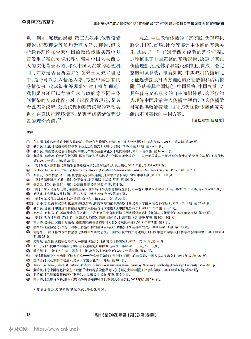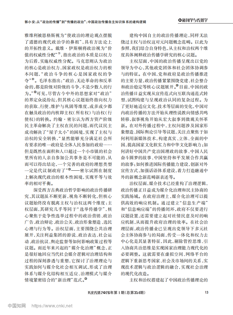 从“政治的传播”到“传播的政治”:中国政治传播自主知识体系的建构逻辑
