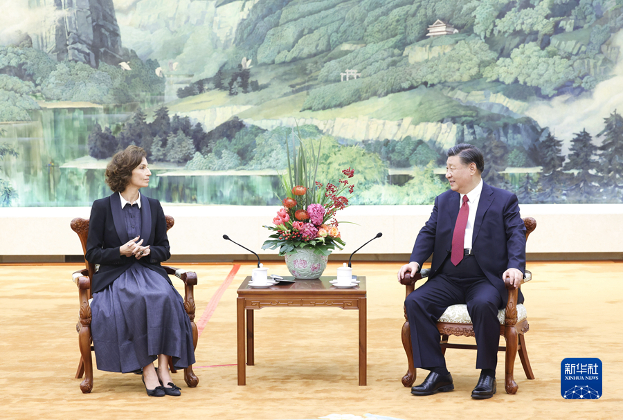 9月28日下午,国家主席习近平在北京人民大会堂会见联合国教科文组织总干事阿祖莱。新华社记者 岳月伟 摄
