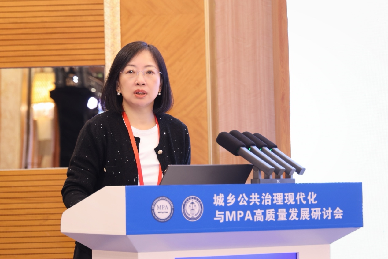 孟溦以《智能时代MPA人才培养的教学形态重塑与能力内核重构》为题作报告。她强调,MPA人才培养唯有实现从实践育人到场景育人的教学形态重塑,从“解决问题”到“理解、定义并解决复杂场景中的复杂问题”的核心能力重构,才能为国家治理现代化输送“政治过硬、本领高强”,且“智治融合、善于创新”的复合型公共管理人才。