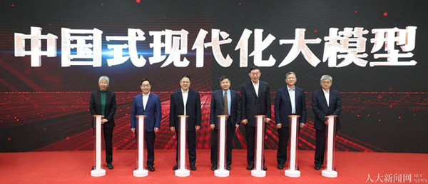 朱光耀,李培林,陈柳裕,张占斌,冯仕政,杨瑞龙,中国人民大学中国式现代化统计监测与综合评价研究团队代表、中国国民经济核算研究会常务副理事长高敏雪共同启动“中国式现代化大模型”重点工程。“中国式现代化大模型”将基于中国式现代化理论,以通用大语言模型为技术基座,构建中国式现代化监测评价数据集和专属大模型,通过浏览、查询、统计分析、智能决策等交互功能,打造中国式现代化进程的可视化展示和专业分析平台。中国人民大学统计学院院长李扬主持启动仪式。