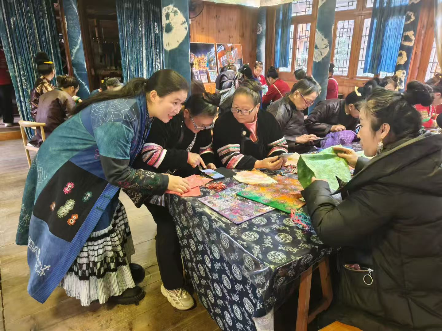 在黎平肇兴侗寨,我们见到了省级蜡染传承人陆勇妹,她带领的蜡染合作社已从最初几人发展至两百余人。“只有让大家靠手艺过上好日子,这门手艺才能真正传下去。”陆勇妹的话,道出了民族文化活态传承的关键。这里的合作社既坚守传统蜡染技艺,又主动对接现代市场,将侗族传统纹样与现代设计融合,开发出服饰、饰品、家居用品等多元文创,让蜡染从“家庭手艺”走向“市场产品”。