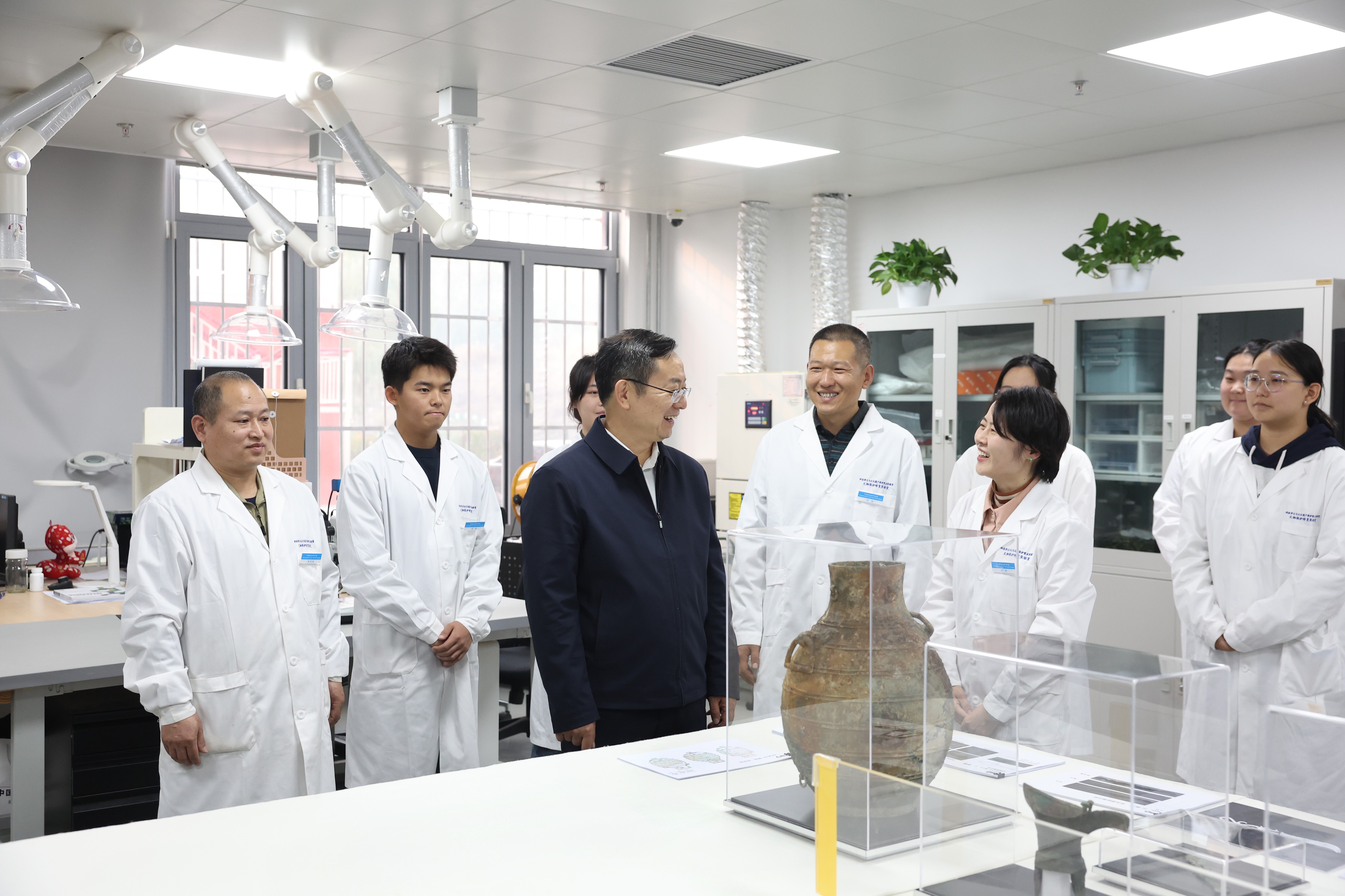 学习贯彻党的二十届四中全会精神中央宣讲团成员,中国社会科学院院长、党组书记高翔调研科技考古与文化遗产保护重点实验室 本网记者 朱高磊/摄