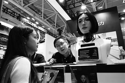 近日,观众在第二十七届中国国际高新技术成果交易会上了解可模仿复杂表情的仿生机器人。 新华社记者 王丰 摄