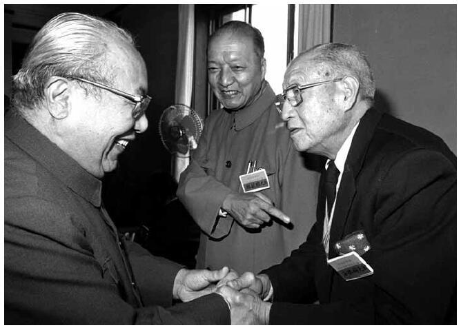 费孝通(左一)参加欧美同学会活动。 图片来源:中国新闻图片网