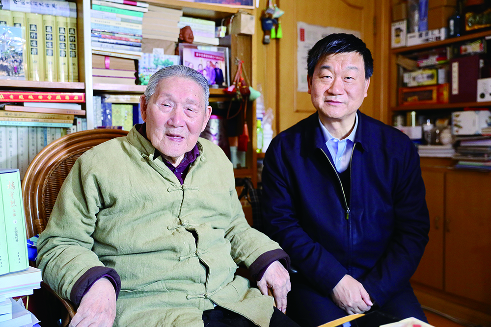 楼宇烈先生(左)与学生李四龙教授 本报记者 张哲/摄