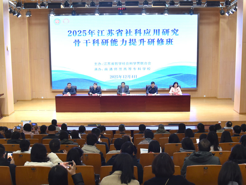 (记者王广禄)12月4—5日,2025年江苏省社科应用研究骨干科研能力提升研修班在南通举行。江苏省哲学社会科学界联合会党组书记、常务副主席张新科,南通师范高等专科学校党委书记陈玉君在培训班开幕式上致辞。江苏省哲学社会科学界联合会党组成员、副主席许益军主持开班仪式。