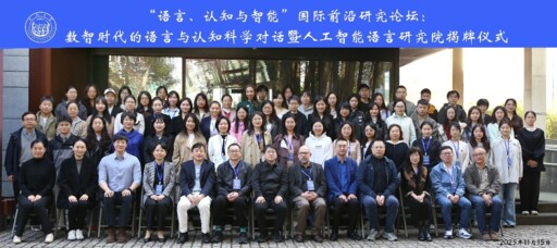 图1参加“语言、认知与智能”国际前沿研究论坛暨人工智能语言研究院揭牌仪式学者合影 校方提供