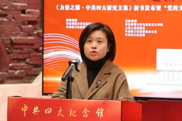 中共四大纪念馆党支部书记、馆长徐雪琛,华东师范大学党委宣传部常务副部长刘麒分别致辞。中共虹口区委党史办公室主任赵明、徐雪琛共同发布《力量之源·中共四大研究文集》新书。