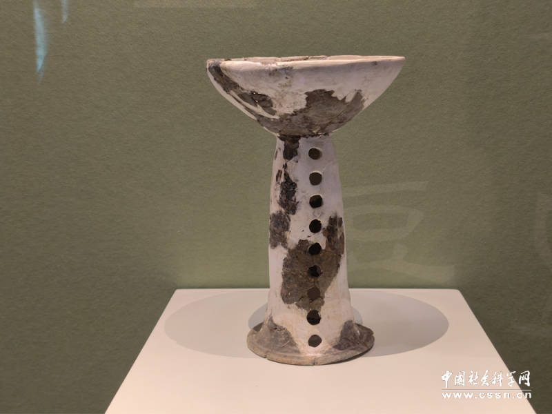 现场展出的“镂孔高柄灰陶豆” 李超/摄