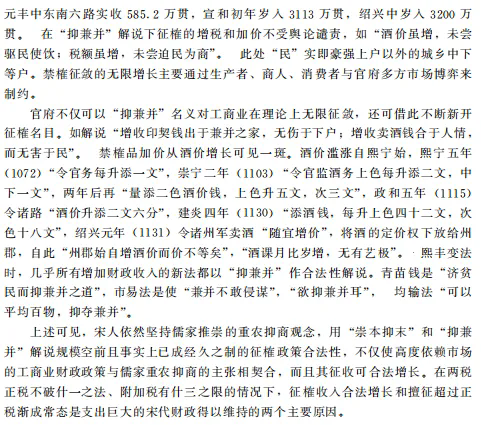 宋代仍在“王土王民”原理,以及“崇本抑末”“抑兼并”“权轻重”的逻辑下坚持传统农商观念,解说工商业政策的合法性,从而使工商业收入得以“合法”增长。在这一原理和逻辑下,皇帝对山海资源和“四民”轻重有绝对支配权,有权在财政收益最大化目标下安排市场商品结构,将几乎所有具有广域流通性、农业不能自给的重要商品实行官营禁榷,财政收支广泛使用市场化手段,造就了规模空前的财政性市场,并在商品结构和远距离贸易中相对于自发性市场占据了主导地位。