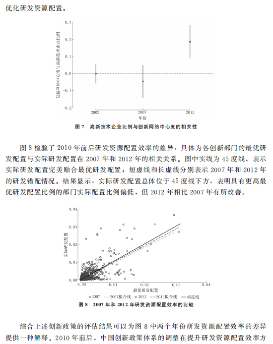 本文通过构建包含生产网络和创新网络的内生增长模型,系统研究中国研发资源配置效率问题,以及创新政策对研发资源配置的优化作用。研究发现,技术创新具有明显的外溢性,有效的创新政策应考虑部门在生产网络和创新网络中的位置。然而,由于企业决策往往忽视技术创新的外溢效应,竞争均衡下的研发资源配置显著偏离社会最优水平。在保持各年研发资源总量不变的情况下,优化研发资源配置能大幅提高社会福利,凸显了识别技术外溢对创新政策设计的关键作用。