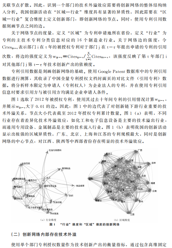 技术外溢产生的重要原因之一,是存在创新网络。在创新网络中,一个部门的技术创新产出不仅能提升自身生产率,还能通过技术外溢提升其他部门的技术创新效率。由于网络效应的存在,技术外溢会通过创新链条逐级传导,进而对宏观经济增长产生影响。因此,一个部门在创新网络中的位置直接影响其技术外溢效应。有效的创新政策应考虑不同部门在创新网络中的位置差异,将研发资源更多配置到处于网络核心节点的部门。