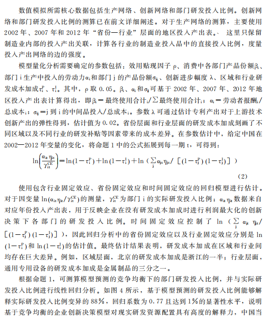 需要指出的是,本文在创新网络的形成机理、研发资源的部门间配置、创新政策的作用机制三个方面有待完善,可以作为未来进一步研究的方向。首先,假设创新网络是外生给定的,没有将创新网络内生化,后续研究可以深入研究创新网络的形成机理,分析影响创新网络形成的重要因素,如人力资本流动、企业异地投资等。其次,研发资源配置分析仅涵盖私人部门,没有考虑公共部门的作用。高校等公共部门是国家创新体系的重要组成部分,在模型中引入公共部门,可以更加全面地分析公共部门和私人部门之间的研发资源配置问题,考察基础研究投入对经济发展的作用机理。最后,仅从宏观层面评估创新政策对研发资源配置的作用,没有深入分析其微观作用机制,后续研究可以从微观层面探讨创新政策影响企业创新行为的具体机制,揭示创新政策从微观到宏观的传导路径。