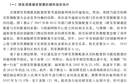 本文通过构建包含生产网络和创新网络的内生增长模型,系统研究中国研发资源配置效率问题,以及创新政策对研发资源配置的优化作用。研究发现,技术创新具有明显的外溢性,有效的创新政策应考虑部门在生产网络和创新网络中的位置。然而,由于企业决策往往忽视技术创新的外溢效应,竞争均衡下的研发资源配置显著偏离社会最优水平。在保持各年研发资源总量不变的情况下,优化研发资源配置能大幅提高社会福利,凸显了识别技术外溢对创新政策设计的关键作用。