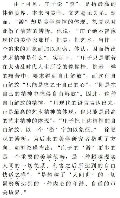 其一,从基本形态而言,庄子论“游”,特指精神的遨游。这是“游”摆脱常见引申义、上升为理论范畴的关键一步。