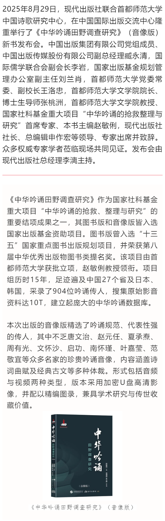 《中华吟诵田野调查研究》(音像版)新书发布会举办