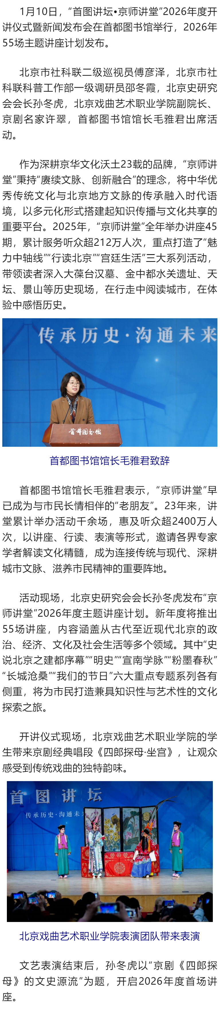 2026年“首图讲坛•京师讲堂”推出55场主题讲座