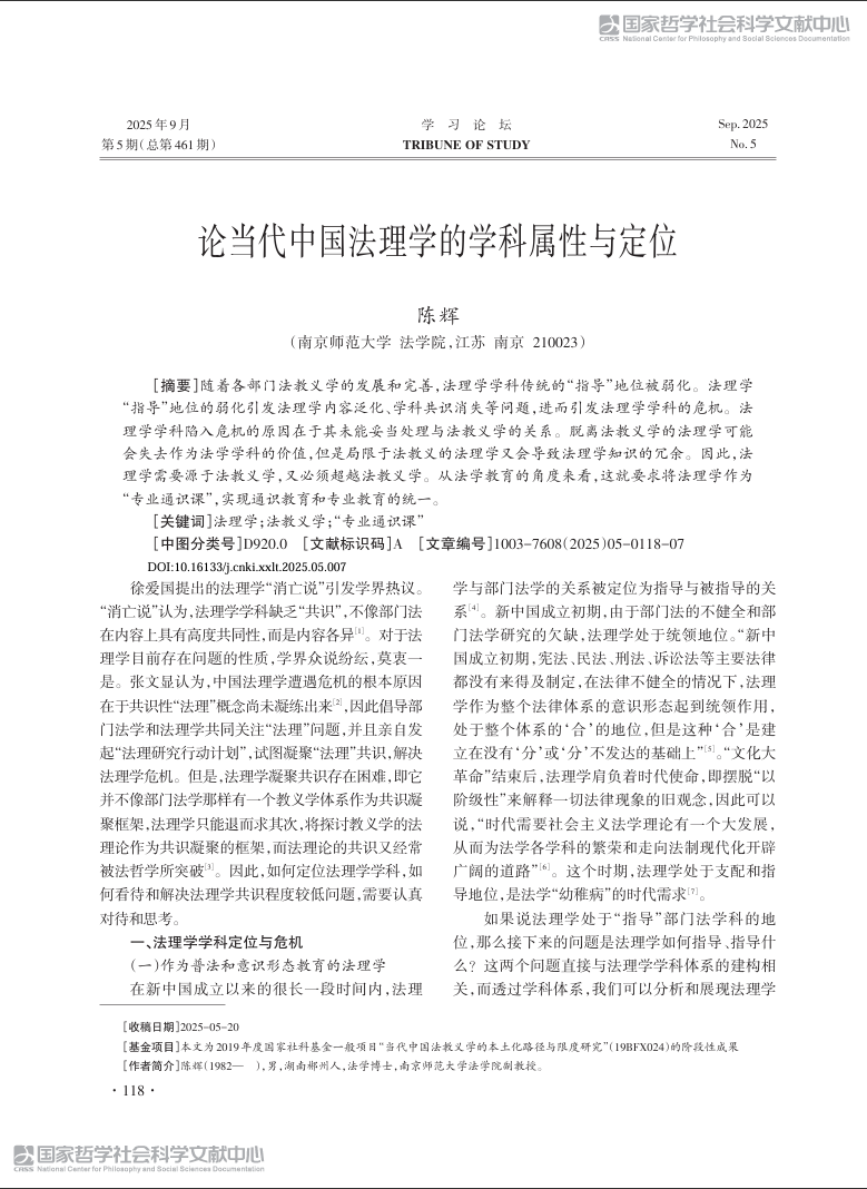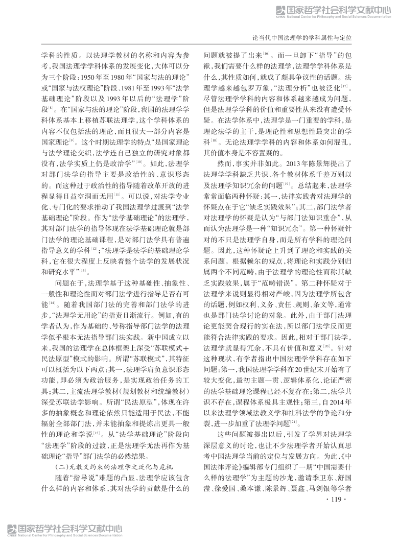 论当代中国法理学的学科属性与定位