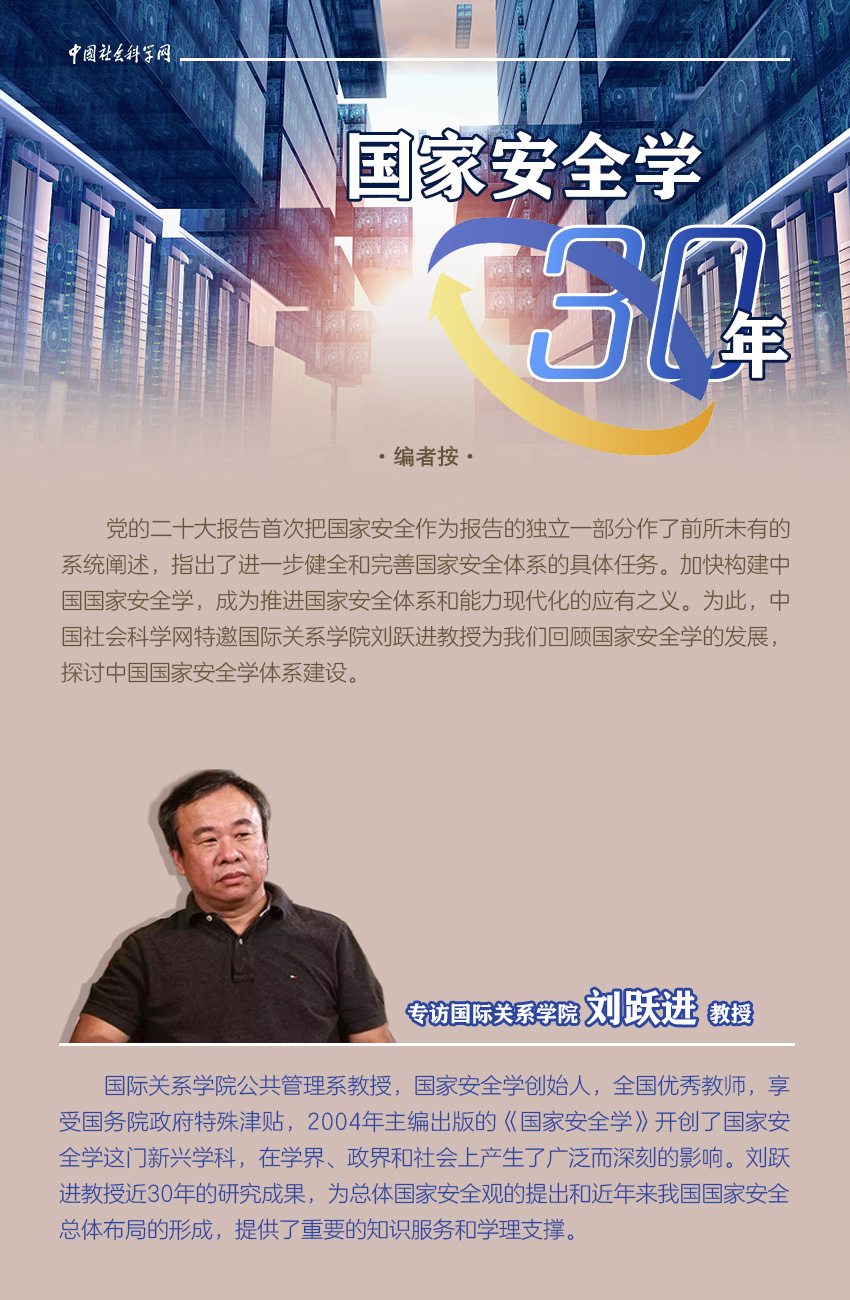 党的二十大报告首次把国家安全作为报告的独立一部分作了前所未有的系统阐述,指出了进一步健全和完善国家安全体系的具体任务。加快构建中国国家安全学,成为推进国家安全体系和能力现代化的应有之义。为此,中国社会科学网特邀国际关系学院刘跃进教授为我们回顾国家安全学的发展,探讨中国国家安全学体系建设。