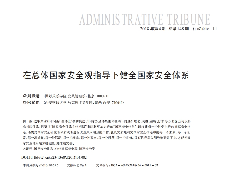 [17]刘跃进.国家安全体系中的社会安全问题[J].中央社会主义学院学报,2012,(2):95-99.