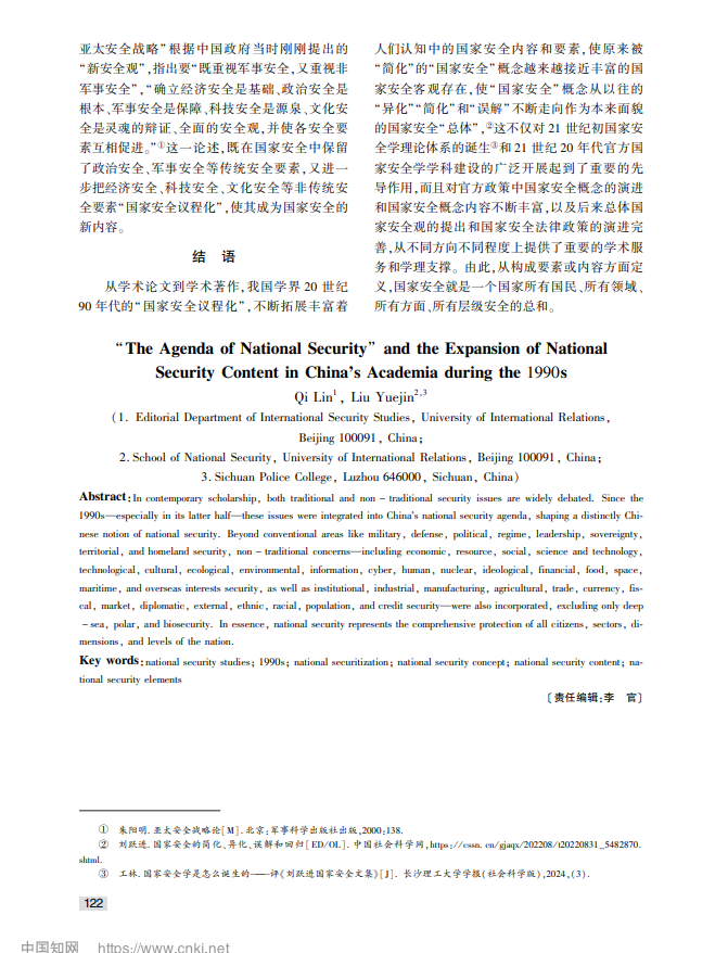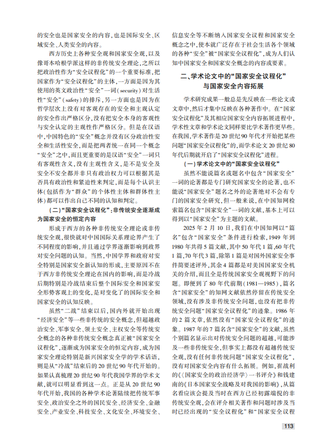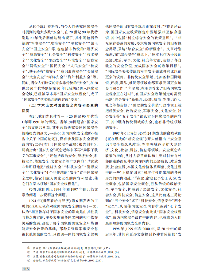 20世纪90年代我国学术领域“国家安全议程化”与国家安全内容的拓展