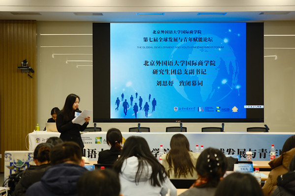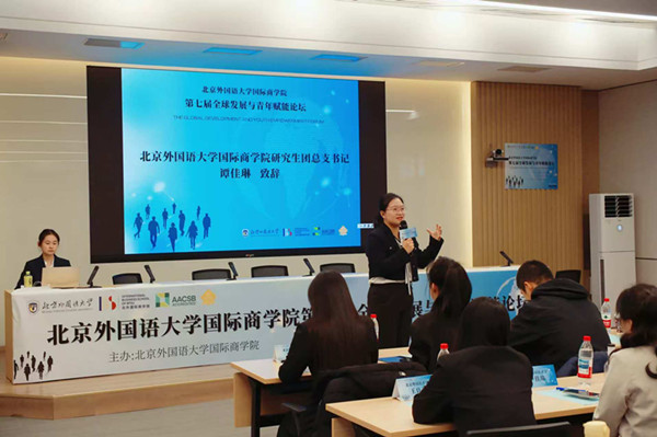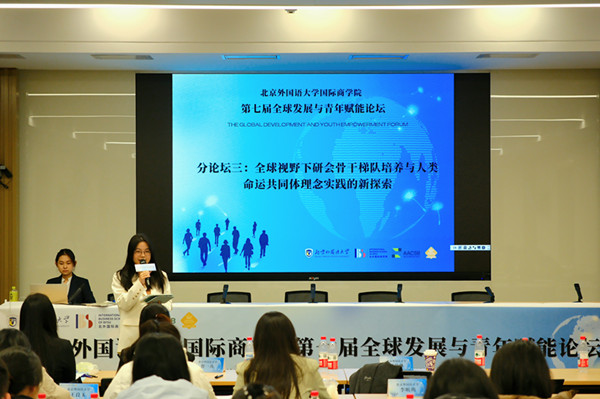 中国社会科学网讯 (记者 李想)12月14日,第七届全球发展与青年赋能论坛在北京举行。此次会议由北京外国语大学国际商学院主办,北京外国语大学国际商学院研究生团总支承办。会议的主题是:智周万物,商赢未来—AI时代青年全球胜任力培养与高校学生组织价值共创论坛。此次论坛聚焦人工智能浪潮下青年能力跃迁与学生组织协同发展的前沿议题,旨在引导青年学子厚植家国情怀、开拓全球视野、锤炼专业本领,推动高校研究生骨干在思想碰撞中共谋发展、于价值共创中携手前行。